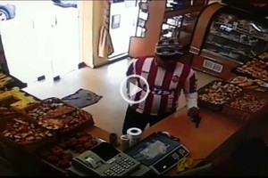 Imágenes que se repiten. Un ladrón ingresa a la sucursal de la panadería Santa Teresita ubicada en San Jerónimo y Mariano Comas, amenaza a la empleada y se lleva dinero.
