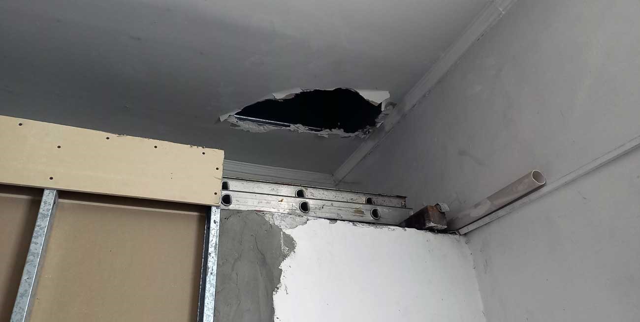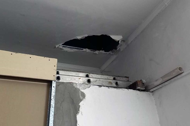 "Esta gente conocía el terreno, eso es seguro. Creo que entraron por la cochera del vecino, la que está ubicada unos metros hacia el sur por calle 9 de Julio. Desde allí treparon y se trasladaron por los techos hasta llegar al mío. Cortaron la chapa, luego hicieron varios boquetes en el cielorraso hasta que le dio la altura donde podían bajar.