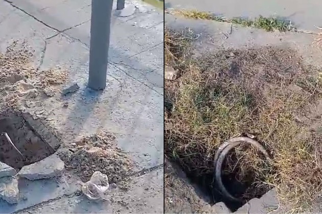 Autores ignorados rompieron varias tapas de registro de las columnas de iluminación. También sustrajeron cables.