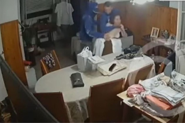 Con los bandidos ya merodeando, en las nítidas imágenes se observa a la mujer, que no estaba durmiendo, sino que permanecía sentada en la cocina, tranquila, hasta que oye ruidos en el exterior, se inquieta y se levanta para inspeccionar. Enseguida los malvivientes, tras descender del techo, se deslizan hasta un patio y, a pesar del enrejado, logran ingresar a la casa y reducir a la indefensa mujer.