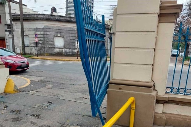 Un auto Volkswagen Vento 2.5 L modelo 2009 color negro que circulaba por calle Mitre pasó de largo la bocacalle en el cruce con Ituzaingó, donde el camino hace una "T" y se estampó contra una de las hojas del portón de hierro azul de la entrada.