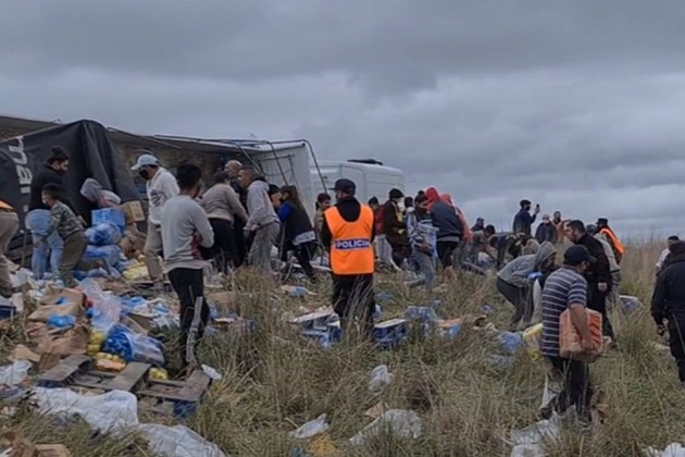 En las primeras horas de la madrugada del domingo, un camión que trasladaba alimentos por la Ruta 51 en cercanías de la localidad bonaerense de Coronel Pringles. Al caer gran parte del cargamento sobre la banquina, los vecinos no demoraron en hacerse presentes.
