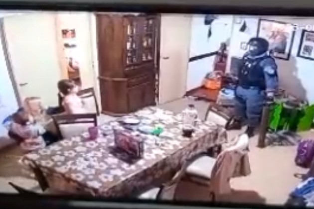 Su niñera, queda de pie y recibe de forma directa el ingreso del personal policial en el marco del operativo especial, aún desconociendo que no se trataba de la locación correcta.