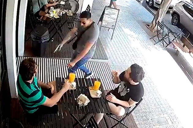 Un delincuente le quitó una mochila con pertenencias a un hombre mientras tomaba un café con su cuñado a plena luz del día.
