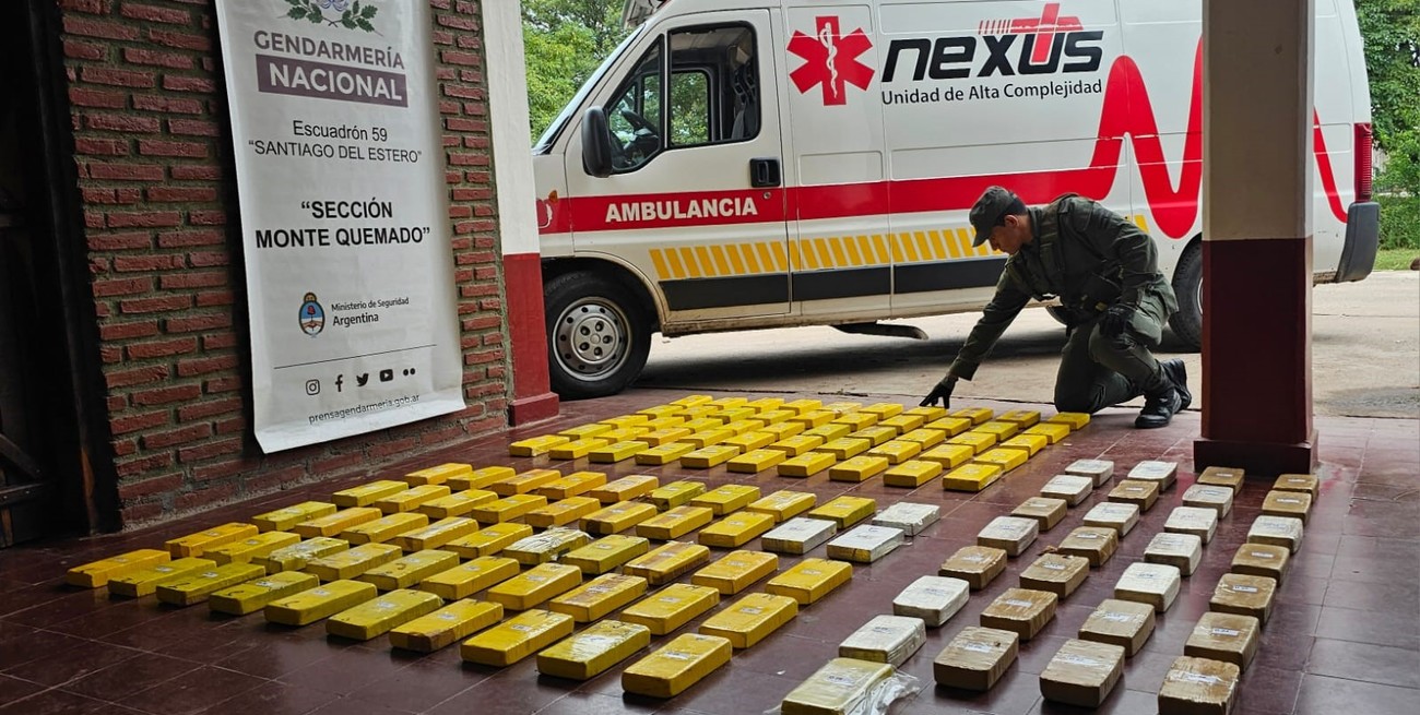 Como resultado de una investigación, Gendarmería Nacional secuestró en Santiago del Estero 134 kilos de cocaína que transportaban en una ambulancia y detuvo a sus ocupantes. Uno de ellos simulaba ser una paciente en grave estado pero no tenía colocado el suero.