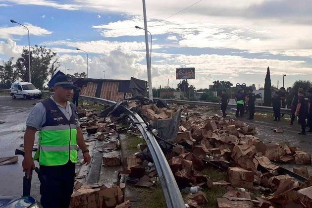 Según se supo, el siniestro ocurrió en la subida a la autopista a Córdoba, cuando el camionero de nombre Alexis se cruzó con una moto que circulaba con dos adultos y un niño.