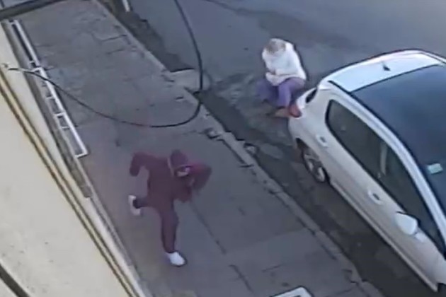 Ante la ausencia de testigos -más allá de las cámaras- el acompañante, que vestía ropa deportiva, saltó del asiento de la moto y emboscó a la señora que estaba próxima a subir a la vereda.