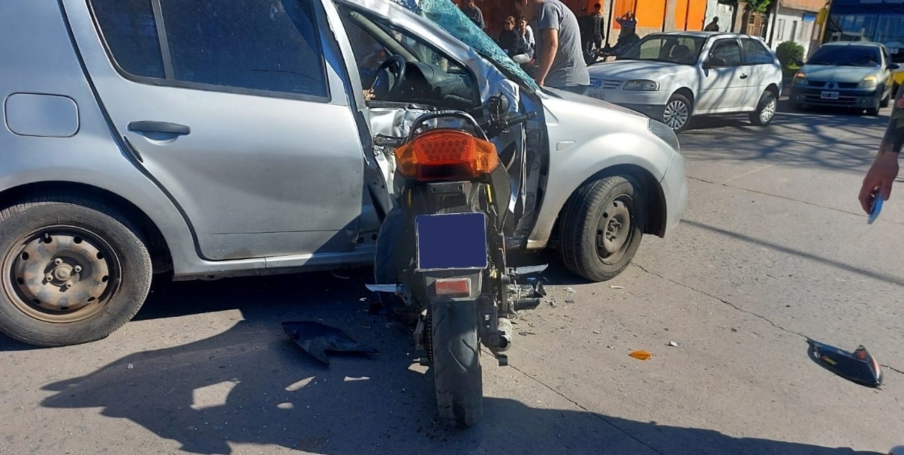 Violento choque entre una moto y un automóvil; un herido de gravedad