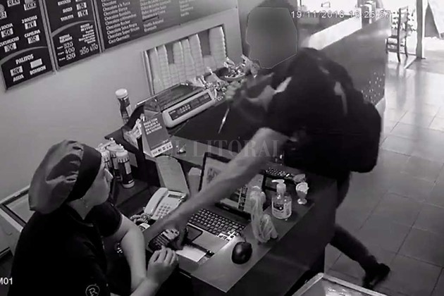 El hombre se paró frente al mostrador aunque ahora exhibiendo un cuchillo y de un manotazo se apoderó del teléfono celular de la empleada.