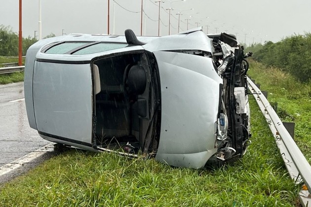 El protagonista fue un automóvil que volcó tras verse involucrado en el accidente junto a un segundo vehículo que sufrió daños menores.