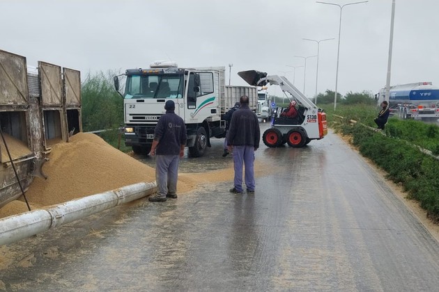 En la mañana de este sábado un camión, que pertenecería a la pollería San Andrés, cargado de alimento balanceado para pollos, a base de soja, protagonizó un accidente en la Circunvalación Oeste, específicamente en las cercanías del acceso al Mercado Norte. Hasta el momento no se han reportado heridos.