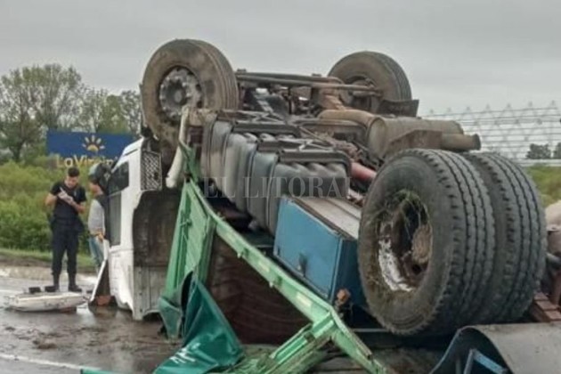 Durante la tarde del miércoles un camión de gran porte protagonizó un vuelco sobre la autopista Rosario-Santa Fe, a la altura de la ciudad de San Lorenzo.