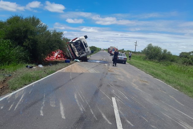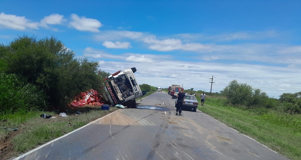 Un camión que circulaba por la Ruta Provincial Nº 1 volcó esta mañana, pasado el mediodía, en jurisdicción de la localidad de Santa Rosa de Calchines, por lo que se montó un operativo policial con restricción parcial al tránsito.
