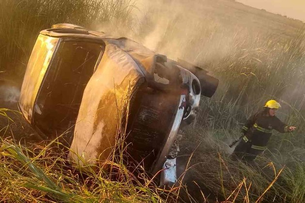 Tres jóvenes resultaron con lesiones de consideración cuando el vehículo en el que se conducían (una camioneta Dogde Ram) volcó y luego se incendió, en un grave accidente ocurrido durante la mañana de miércoles en San Justo.