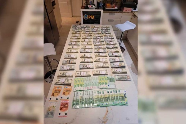 El operativo incluyó siete inmuebles y en uno de ellos, ubicado en un barrio cerrado donde vive la modelo, es donde surge la suma encontrada por la Policía Federal.
