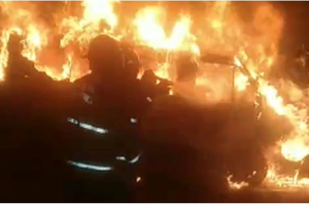 En redes sociales comenzaron a circular videos tomados por testigos, donde se observa cómo el fuego trepaba por los costados de algunas unidades, alcanzando alturas superiores a los dos metros.