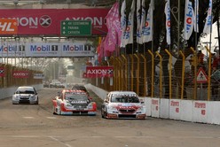 Cuatro fueron los coches de la categoría más tecnológica de Sudamérica que realizaron el tradicional cruce por la estructura emblema de la capital provincial.
