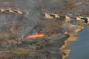 Una quema de pastizales provocó una densa humareda cerca del puente Carretero