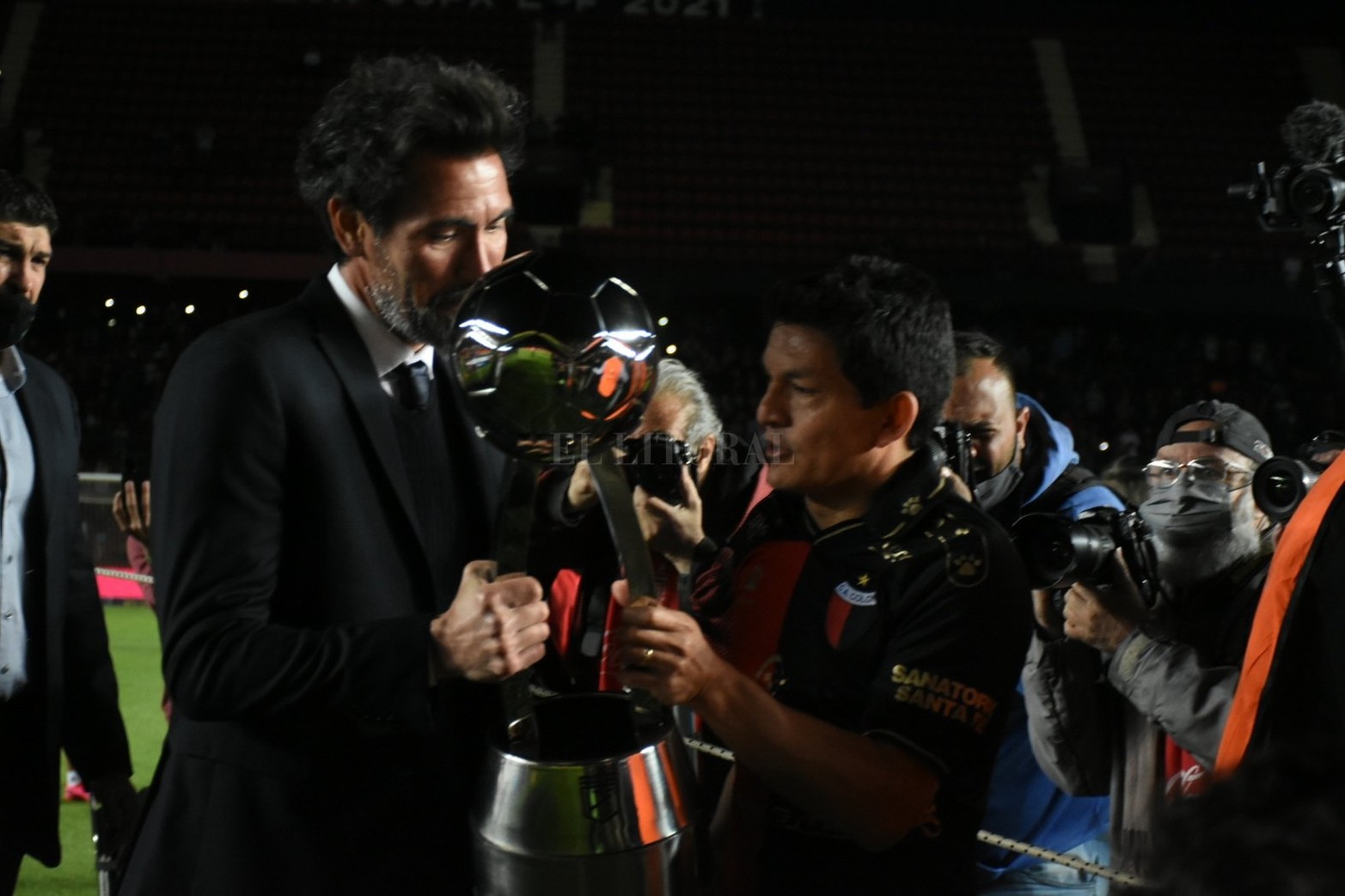 21 / 28 El presidente José Vignatti levanta la primera copa que conquistó el club Colón. Foto: Manuel Fabatía