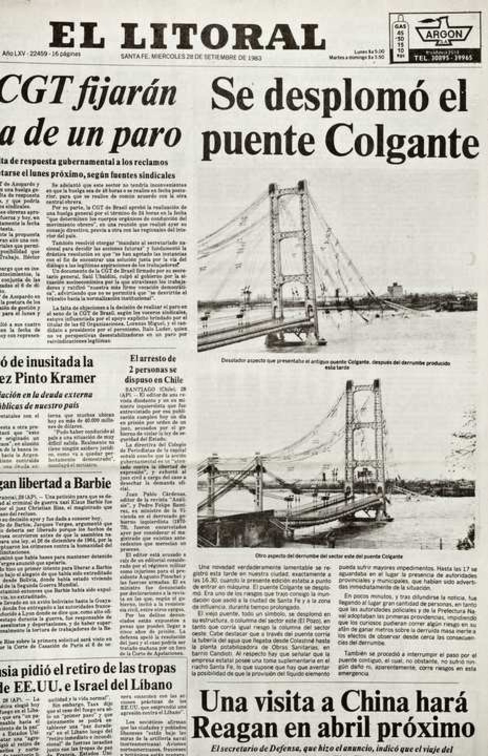 5 / 15 Así quedó la estructura del puente colgante en septiembre de 1983. Foto: Archivo El Litoral - Alejandro Villar
