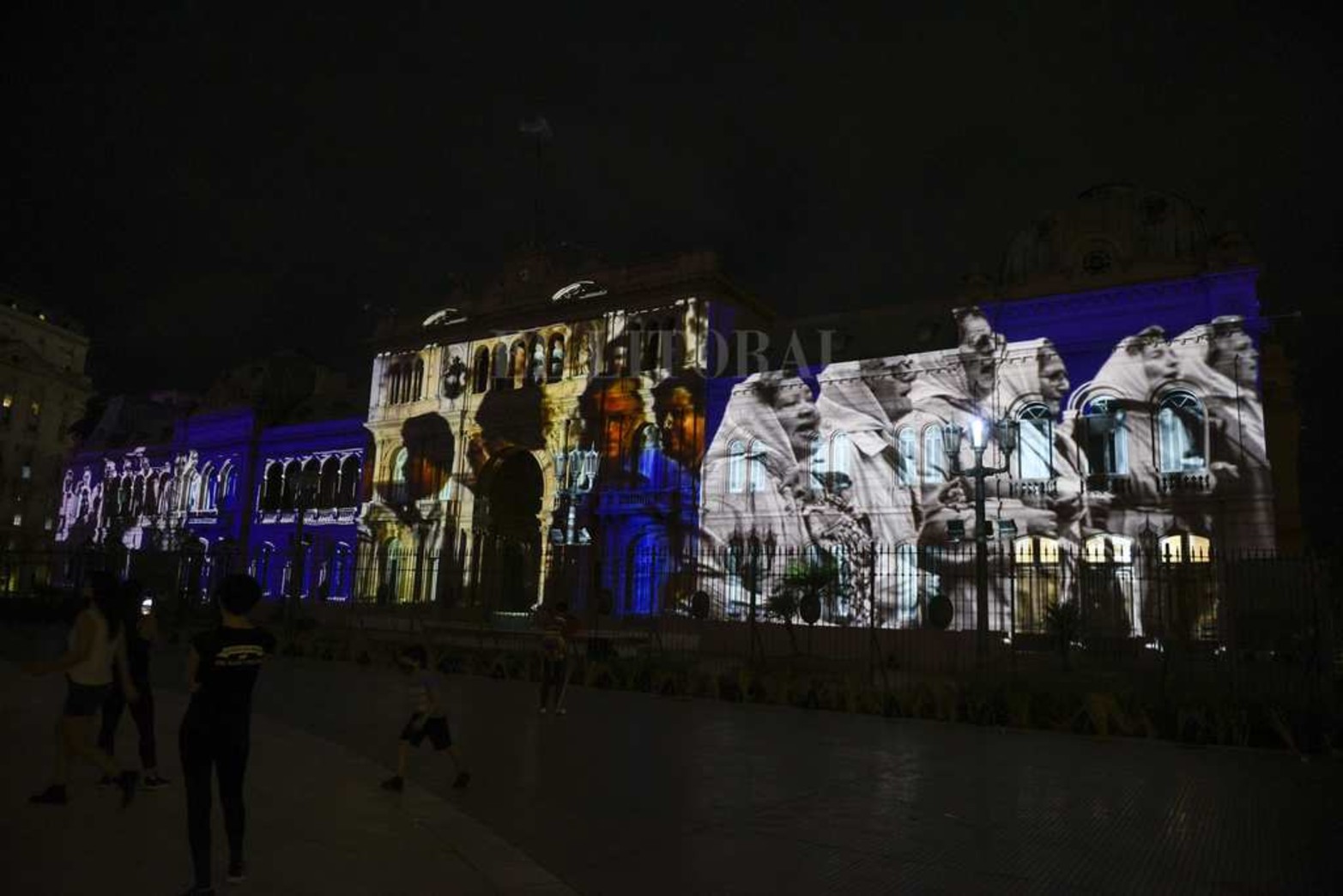 3 / 5 El Gobierno Nacional proyectó sobre la Casa Rosada, a través del sistema mapping, imágenes de la lucha de las madres y abuelas de Plaza de Mayo al conmemorarse el 45 aniversario de haber iniciado el golpe de Estado Cívico Militar. Foto: Mariano Sánhez - Telam