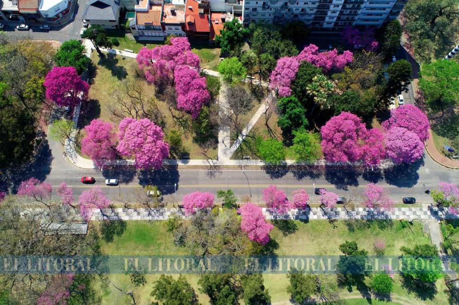 9 / 25 Desde el aire, la zona del parque del Lago del Sur, lucen los lapachos rosados y los tonos verdes. Foto: Fernando Nicola