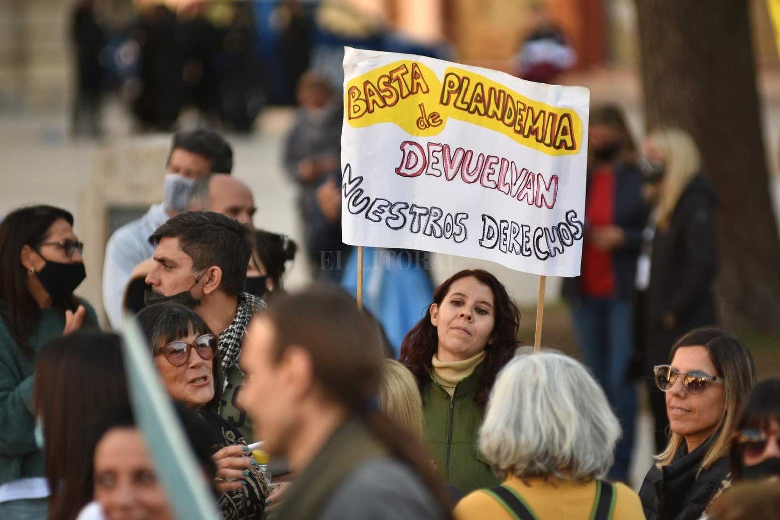 11 / 12 Comerciantes, gastronómicos y propietarios de gimnasios de la ciudad de Santa Fe se dieron cita frente a la Casa de Gobierno para protestar contra el nuevo cierre de actividades por el incremento de casos de coronavirus en la región. Foto: Pablo Aguirre