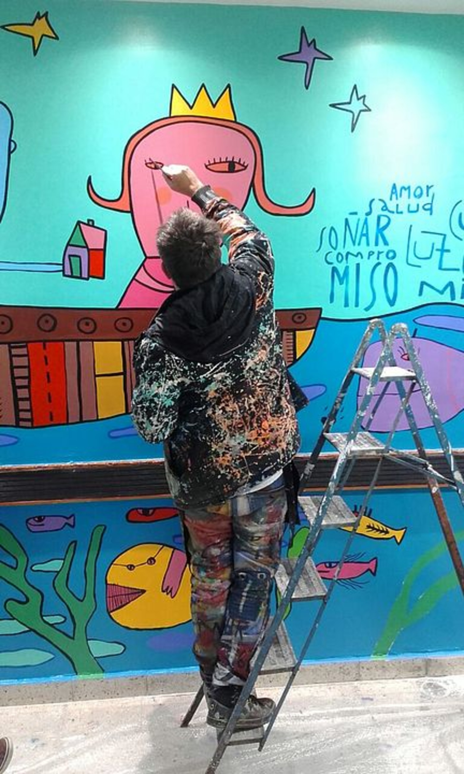 Milo Lockett pintó un mural para los niños con cáncer del Iturraspe