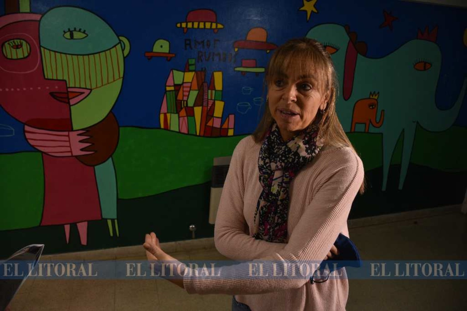 1 / 9 Lucía Poletti, directora de Rumbos, en el espacio de la institución que fue intervenido en 2019 por el artista plástico Milo Lockett. Foto: Guillermo Di Salvatore