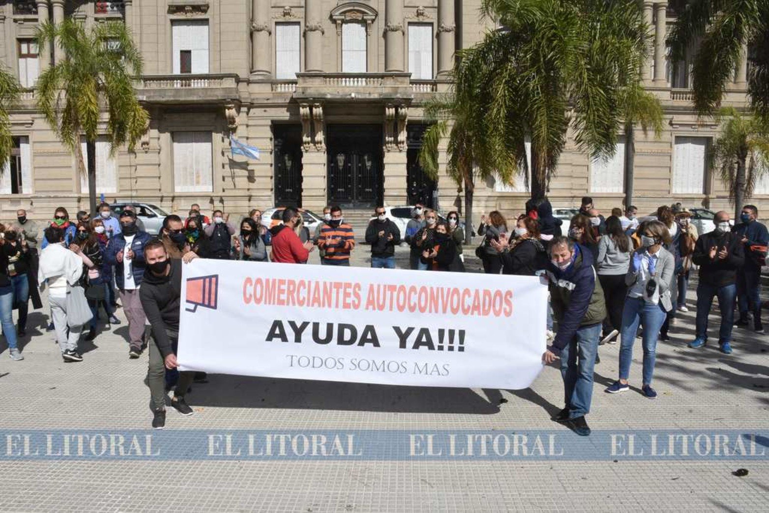 12 / 12 Crítica situación. Comerciantes y empresarios locales se autoconvocaron frente a la casa de Gobierno hoy a mediodía. Foto: Guillermo Di Salvatore