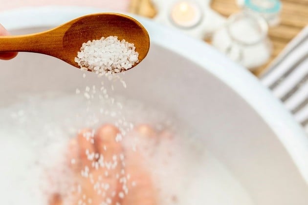 Sumergir los pies en agua y sal para desinflamar