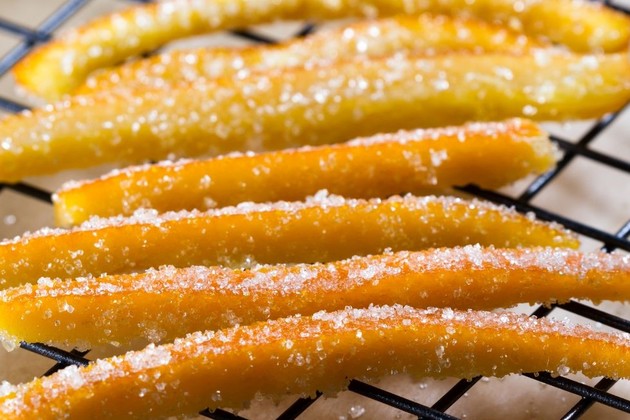 Lo positivo de las cáscaras de naranja confitadas es que te servirán para otras preparaciones, como budines, bizcochos, pan dulce y también puedes bañarlas con chocolate, una delicia en todas las versiones.
