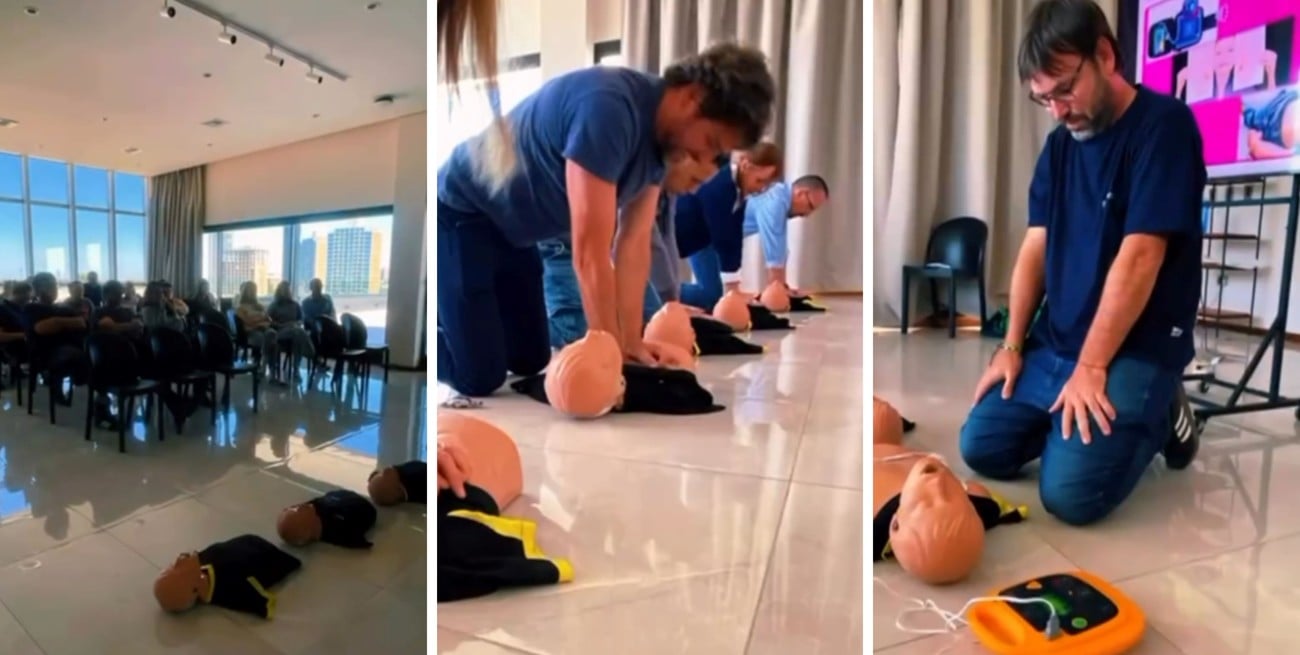 La jornada, realizada el martes 23, combinó teoría y práctica sobre reanimación cardiopulmonar y primeros auxilios. Los empleados aprendieron a actuar ante emergencias médicas y a usar desfibriladores automáticos, reforzando la importancia de la prevención y la seguridad en el ámbito laboral y familiar.