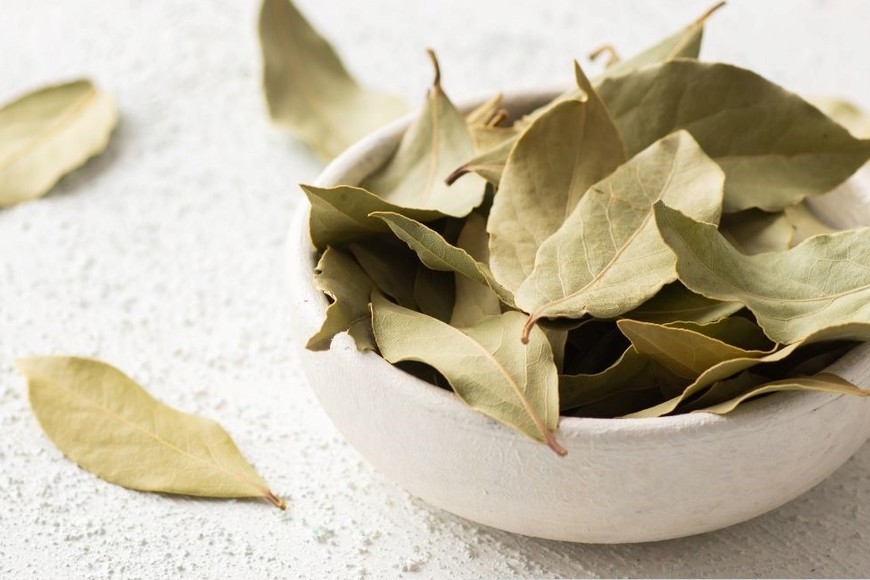 Llená el vaso con agua pura y colocá las tres hojas de laurel en su interior.
